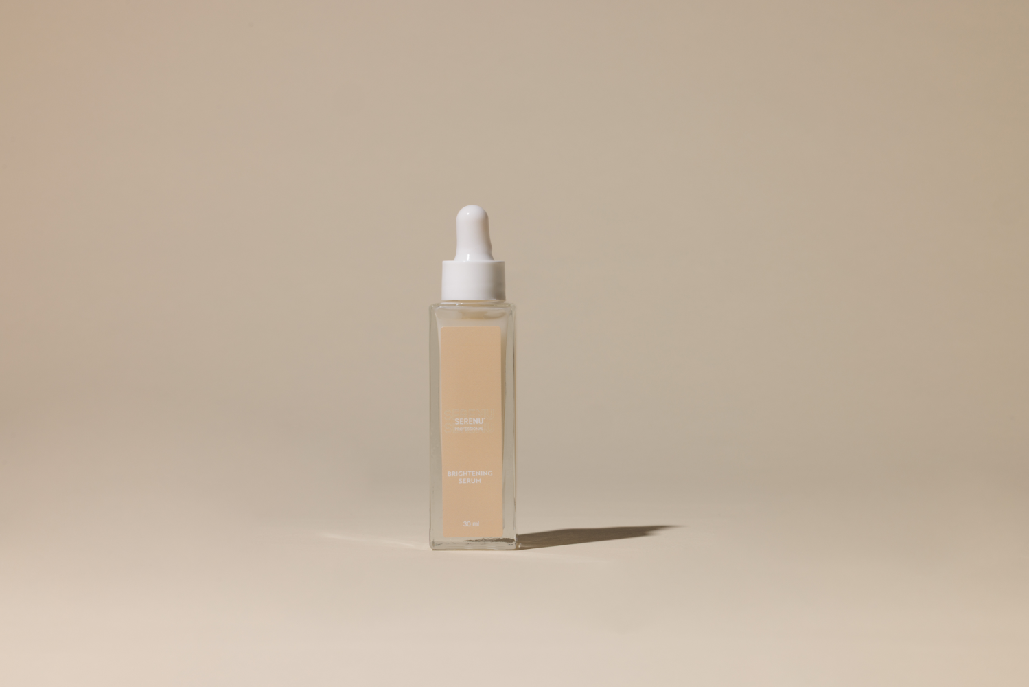 After cleansing evenly apply several pumps of Brightening Serum to the entire face